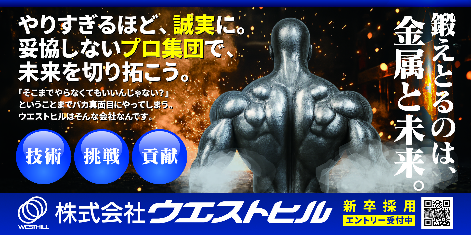 熱処理という業種は世間一般的に見るととてもマイナーで知られていない業種だと思いますが、ウエストヒルは創業以来ずっとそんな「熱処理」に全集中で取り組み続けている会社なんです。