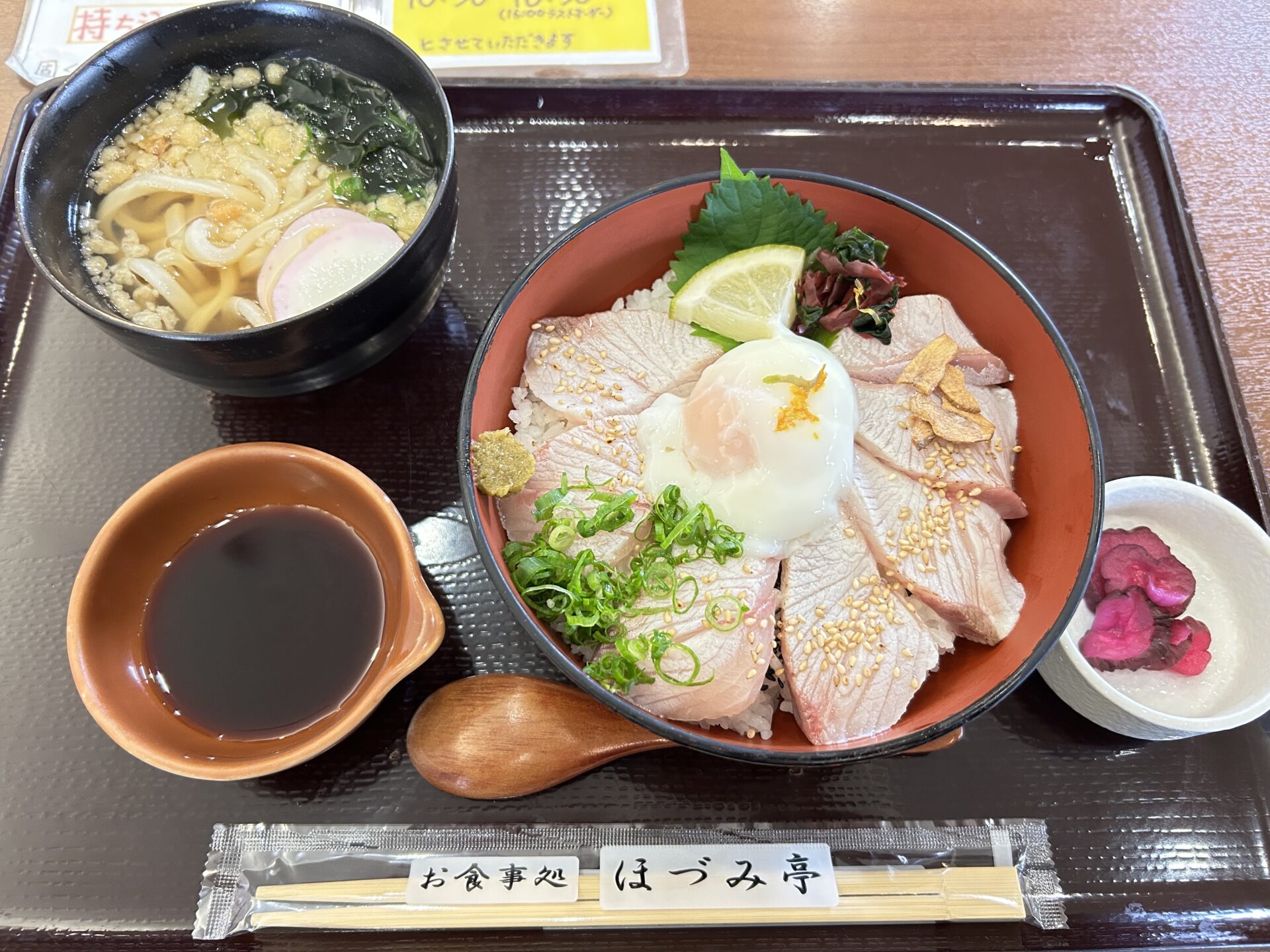 休日に宿の近くにある道の駅の「ほづみ亭」でぶり炙り丼をいただきました