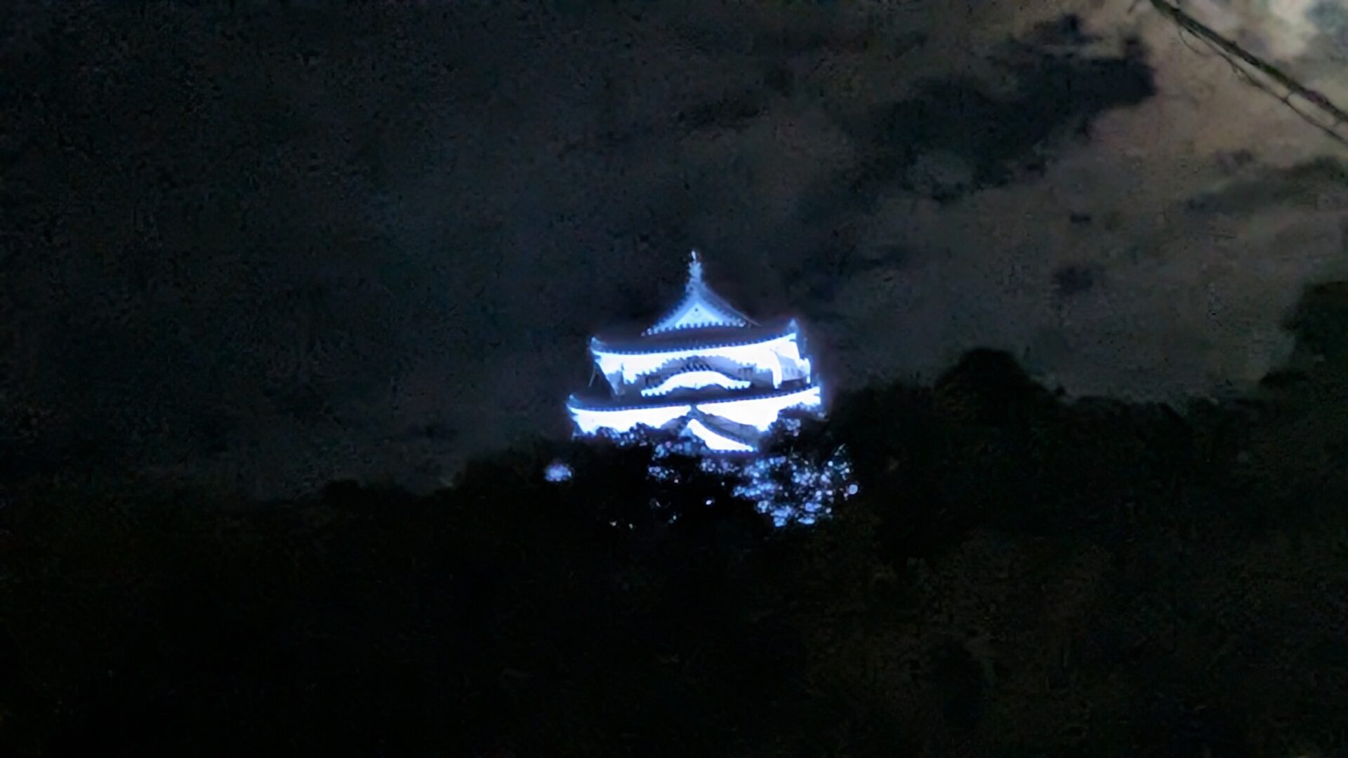 その際に路地の切れ間からライトアップされた宇和島城が夜空に浮かび上がっているのを見つけました👀